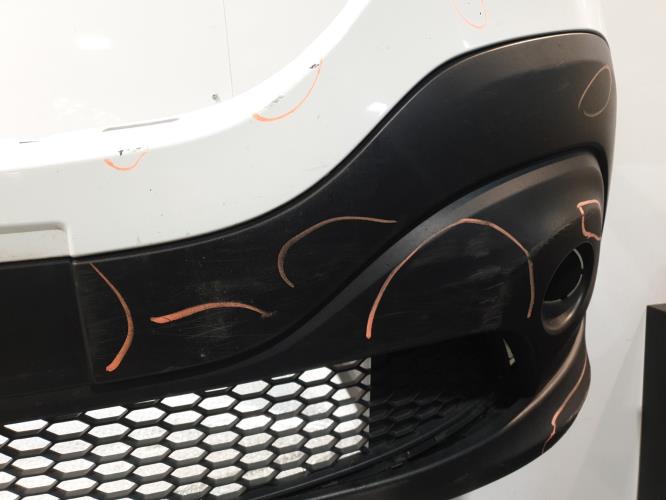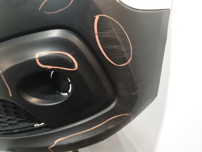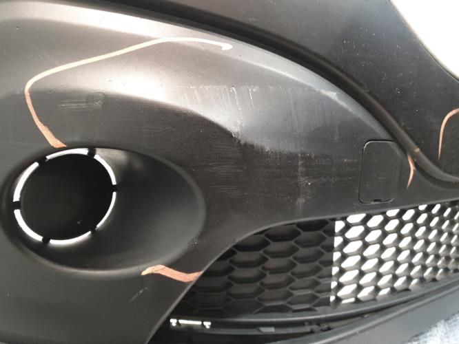 Description : Plusieurs rayures plus ou moins profondes et déformation sur le bas du pare-chocs, voir photos