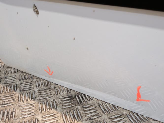 Longue rayure/déformation sur le bas de la pièce